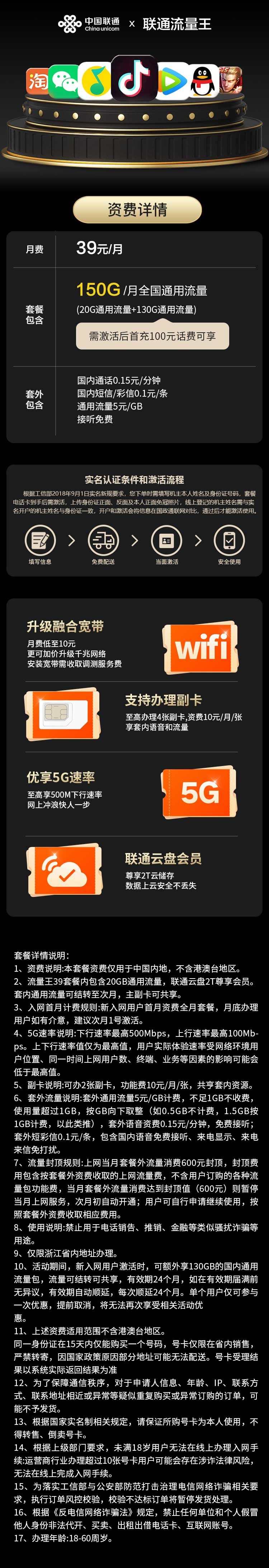 联通流量王39元150G